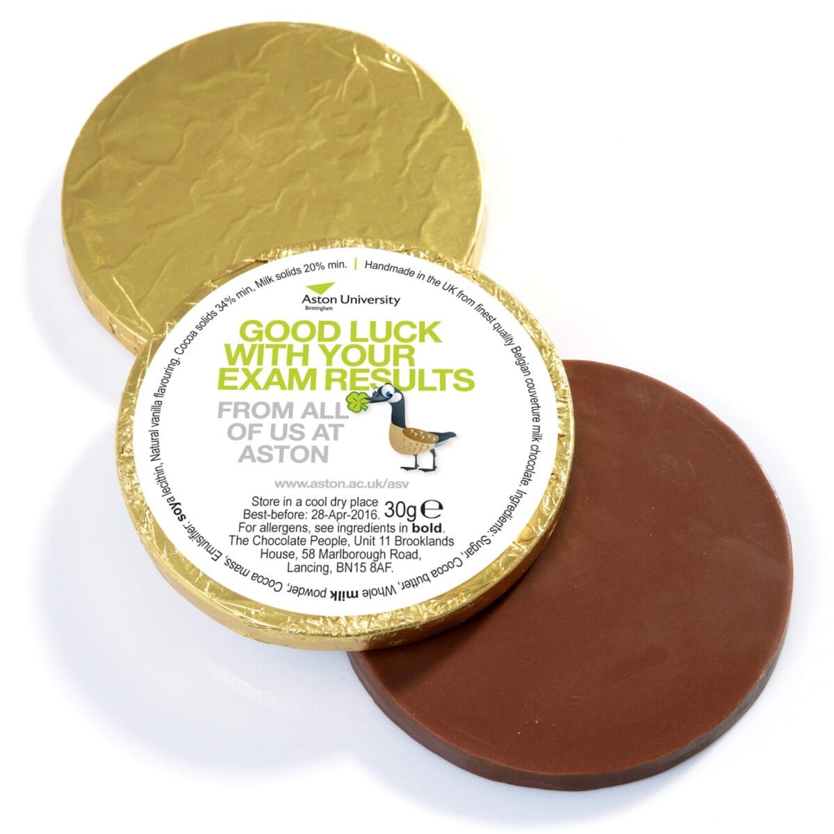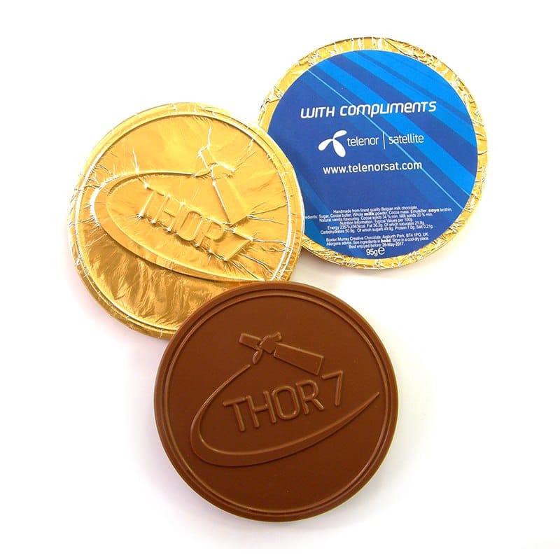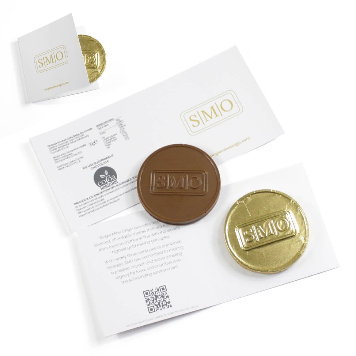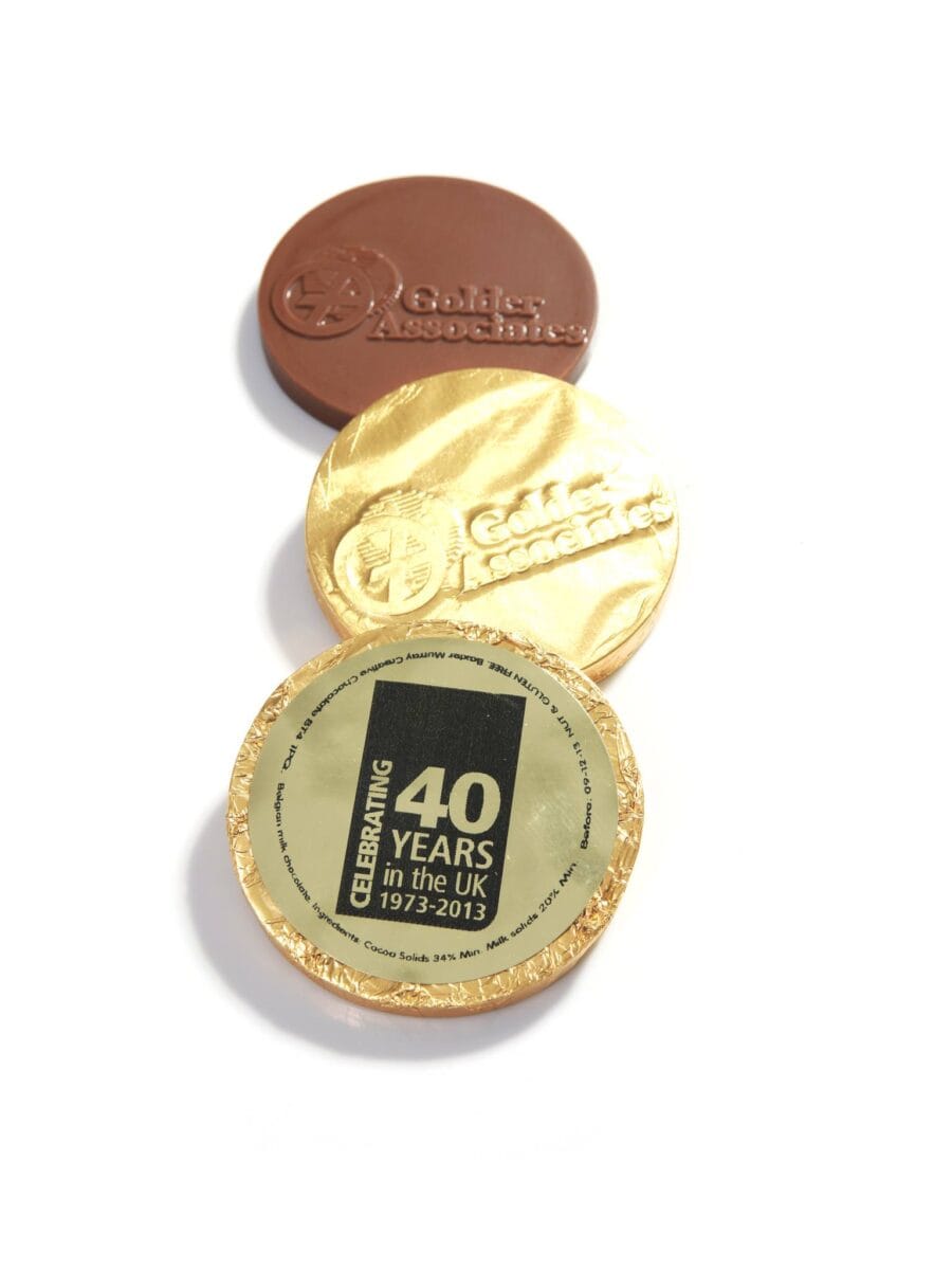 Bespoke Promotional Chocolate Coin Options In the United Kingdom chocolate coins mimic the design of real money; they are traditionally bought around Christmas and are used to decorate the Christmas tree and to fill the stockings of children. When children visit a friend or relative they are allowed to find and take chocolates from the tree as a treat. A variant of this is that chocolate coins are hidden somewhere in the house for children to find, often in the form of a treasure trail.
